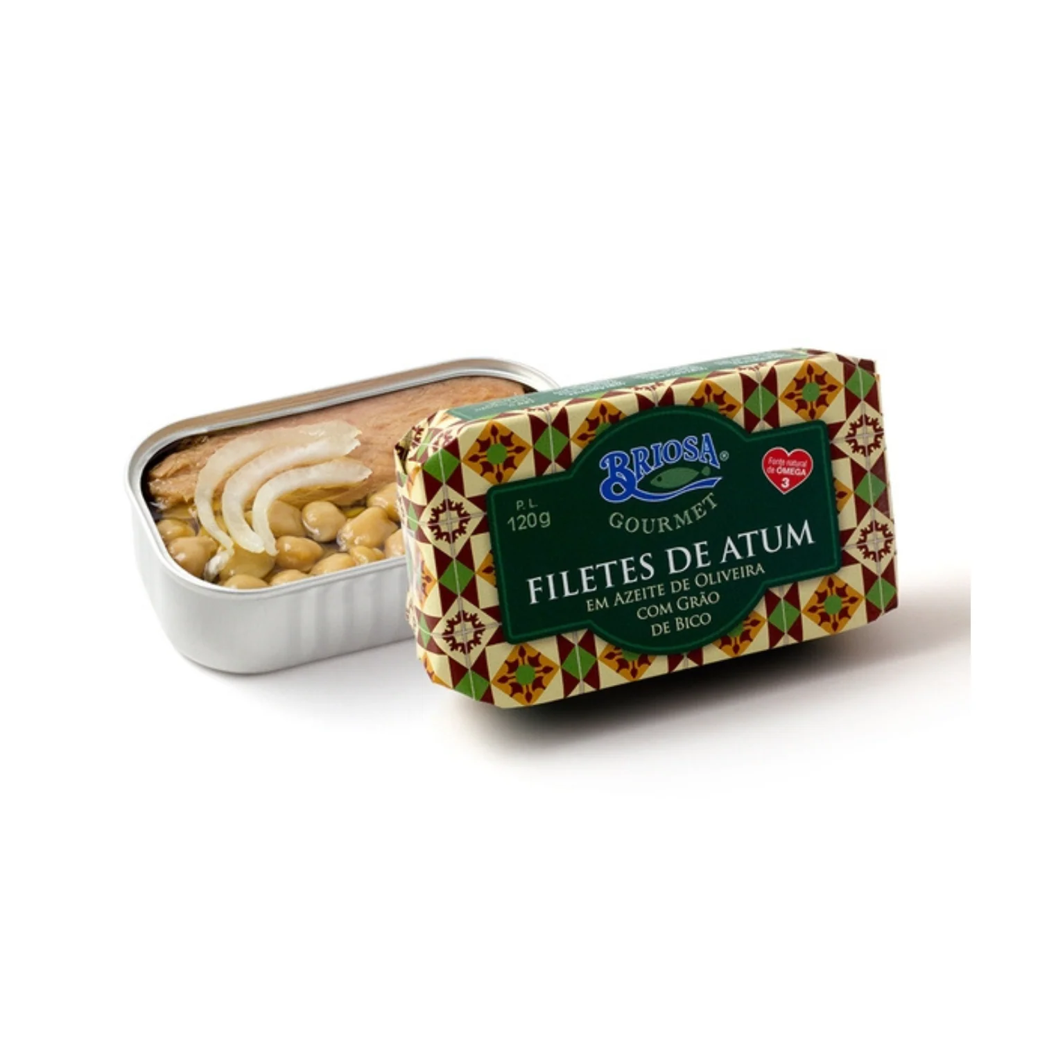 Briosa Gourmet Tuna Fillets in Olive Oil with Chickpeas is a delicious blend of traditional Portuguese flavors and contemporary ingredients. With its eye-catching tile design that reflects the country's heritage, Briosa combines boldness and tradition to create a unique taste experience. The tuna fillets are carefully sourced and preserved in olive oil, combined with tender chickpeas to create a classic and delicious and unique flavor combination.